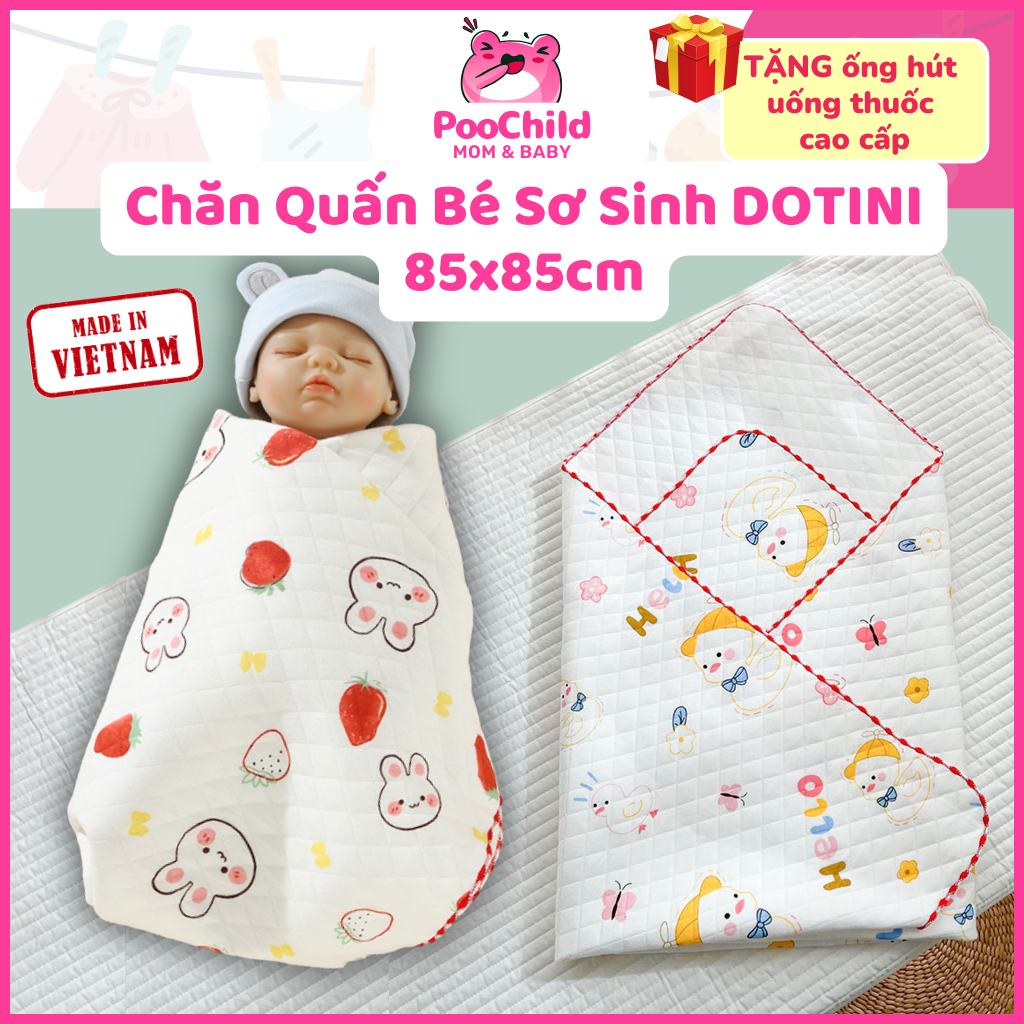 Chăn chần bông, choàng ủ, khăn quấn bé sơ sinh DOTINI 85x85cm loại dày
