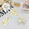 Set mũ bao tay bao chân cho bé sơ sinh chất liệu Muslin họa tiết xinh xắn siêu mềm viền bo co dãn cực tốt