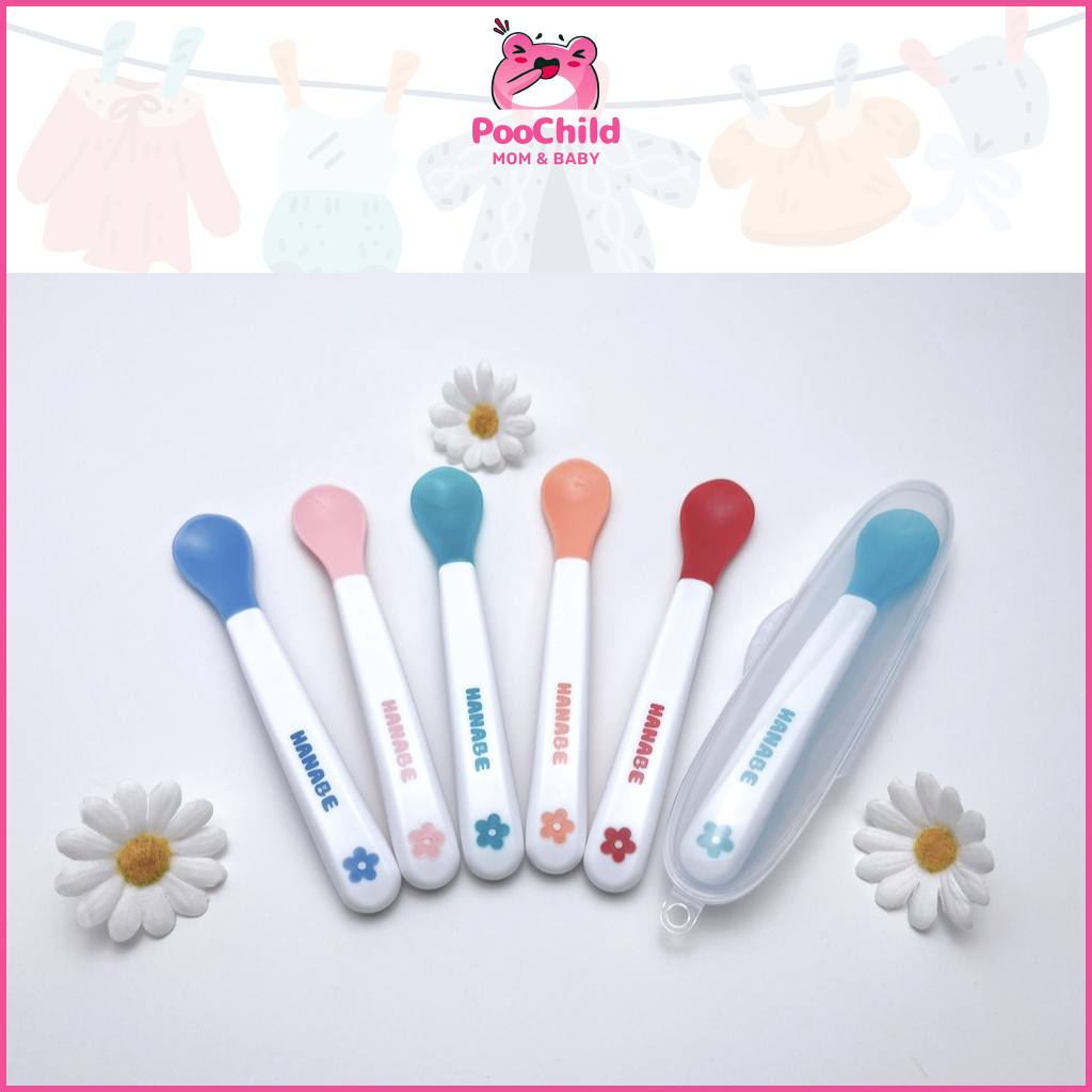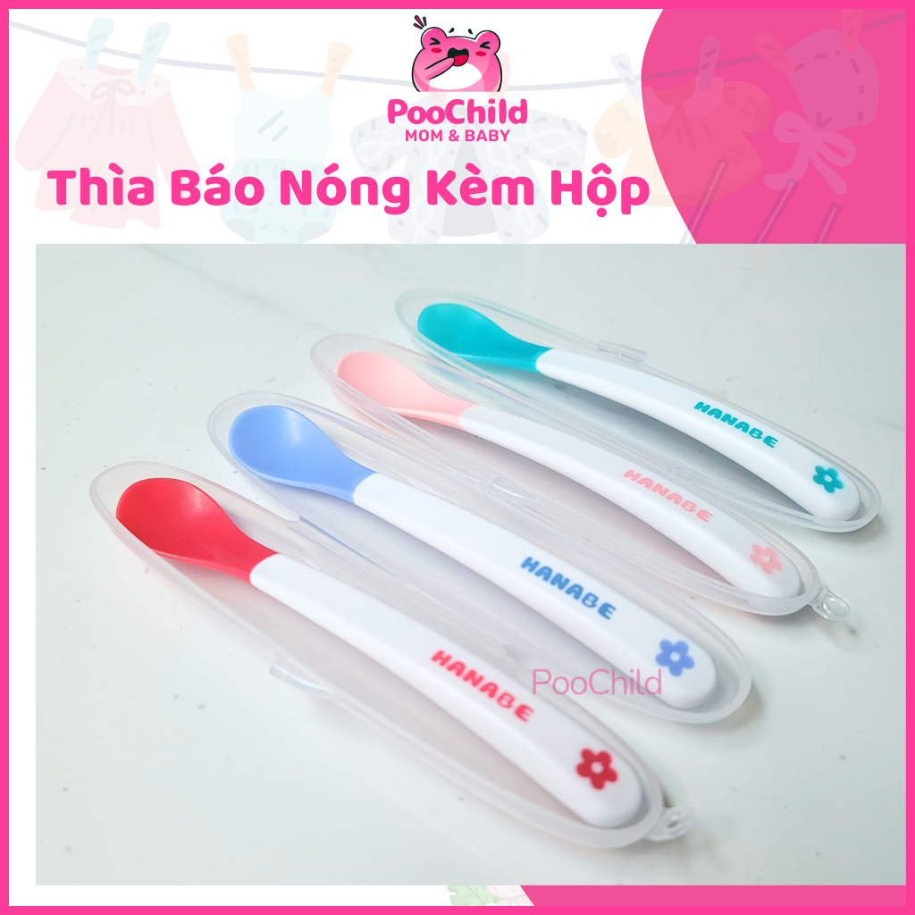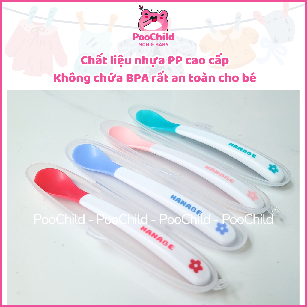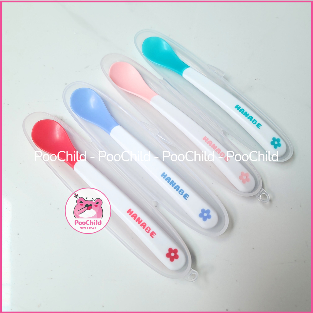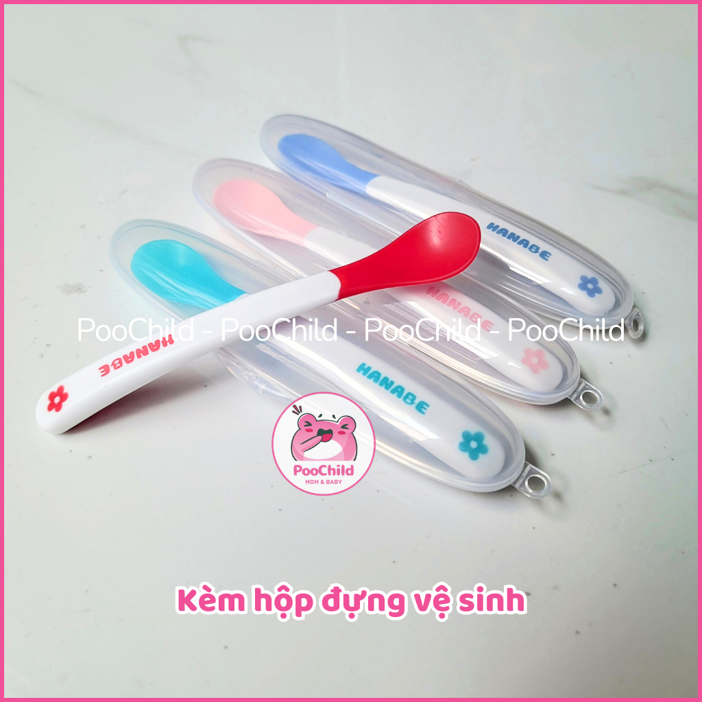 Thìa ăn dặm cho bé có cảm biến nhiệt chống nóng, muỗng ăn dặm báo nóng Hanabe có hộp đựng vệ sinh