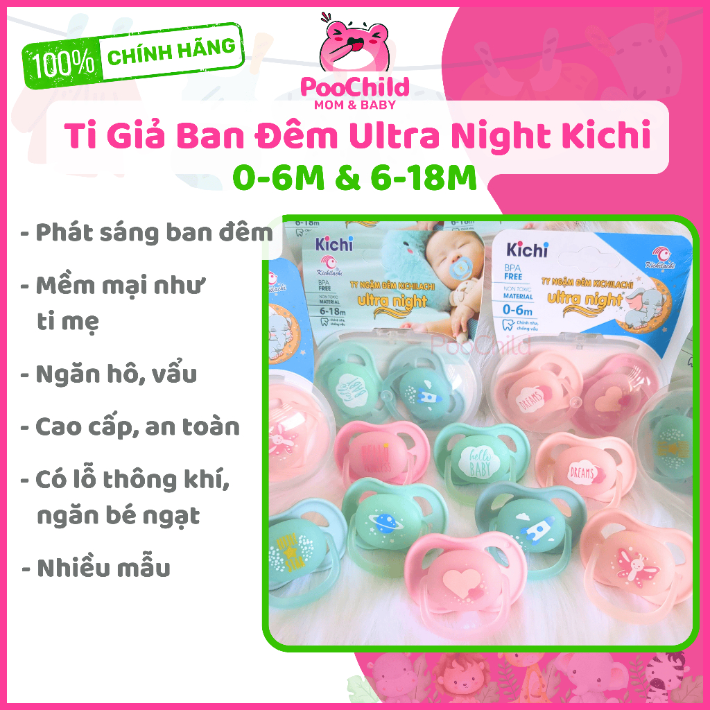 Ti giả Ultra Night ban đêm cho bé, ty ngậm đêm phát sáng Kichilachi Ultra Night cho bé chỉnh nha, chống vẩu