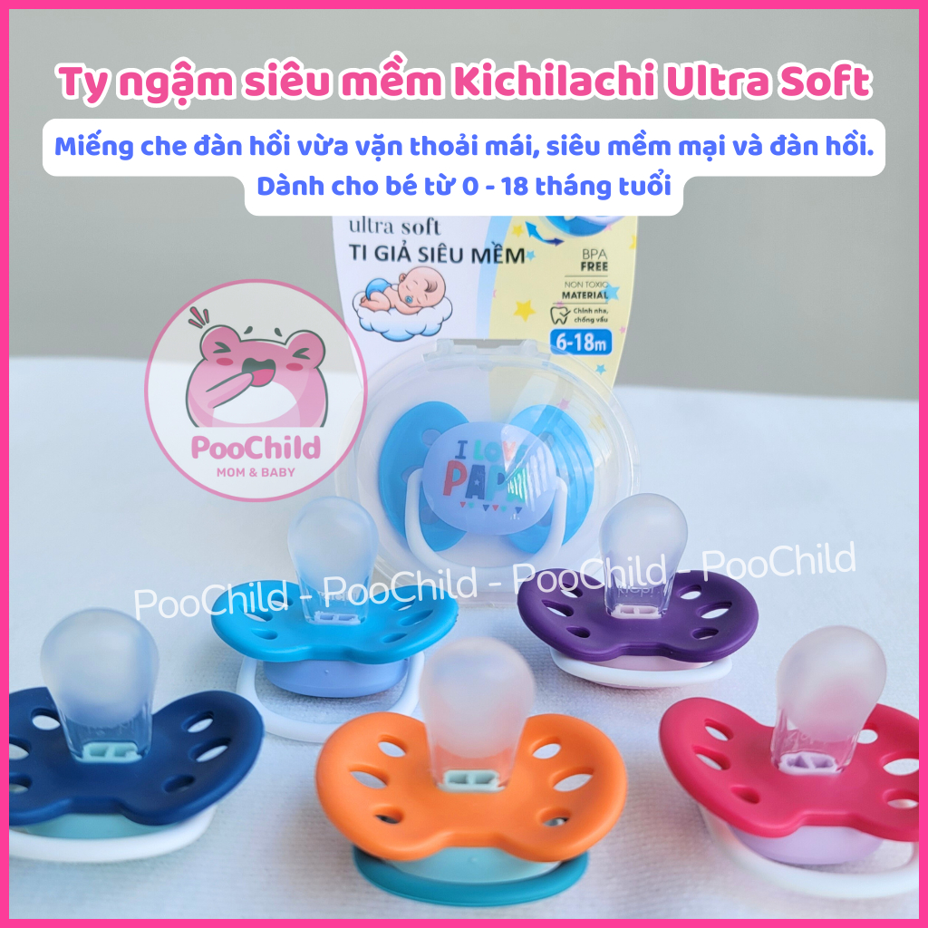 Ti giả Kichilachi Ultra Soft siêu mềm chỉnh nha chống vẩu cho bé 0 đến 18 tháng